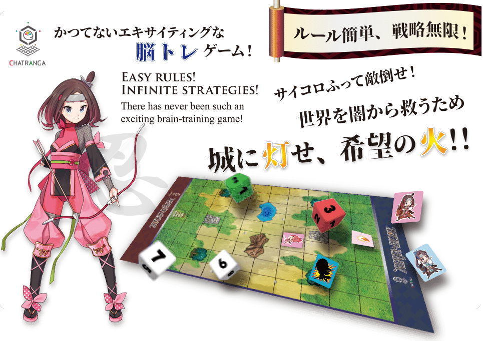 The famous Kannon (Avalokitesvara) Bodhisattva is known as the Goddess of Mercy. In the Lotus Sutra, it is explained that Kannon Bodhisattva appears in 33 different forms to rescue people, with various forms appearing according to each person’s needs. For example, Kannon appears as a monk, child, old woman, dragon, etc., and even appears as a demonic ogre to rescue people and provide spiritual development.I’m not a good chess or shogi player. Actually, I can barely win at those games. Also, I don’t like to lose, so I keep a distance from games I can’t win.But there’s a game called “Ninja Hope” that I do play. It’s a two-player strategy board game like chess and shogi, but there’s one significant and unique difference: you use dice to play.